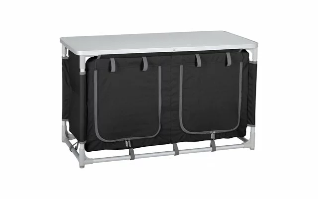 Este aparador ofrece mucho espacio de almacenamiento y tiene una gran zona de estanterías. La parte superior es de MDF revestido con bordes de aluminio. Las patas son ajustables en altura y garantizan un soporte seguro en suelos irregulares. Funda duradera y de alta calidad. Entrega con bolsa de transporte incluida.