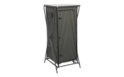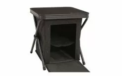 Con el armario Kampa Zara podrá guardar sus utensilios de forma ordenada y disfrutar de su acampada. El armario es rápido de montar y fácil de transportar gracias a su tamaño compacto y su peso ligero. Dispone de seis compartimentos interiores, una robusta estructura de aluminio y una resistente encimera laminada. El mueble ideal para su viaje de camping.