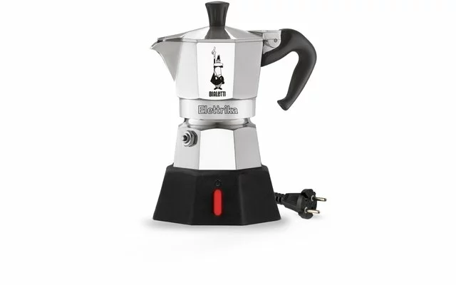 La Moka Elettrika te acompaña donde quieras. Para disfrutar de un delicioso café italiano, ya no necesita una cocina, sino que puede disfrutar de su café en cualquier lugar donde haya una toma de corriente, gracias al sistema de calentamiento móvil. La electrónica incorporada protege contra el sobrecalentamiento. Interruptor con luz piloto integrada.