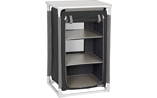Der Bezug (100 % Polyester) ist sehr strapazierfähig. Die Ablagefächer können durch den integrierten Reißverschluss geöffnet werden, damit auch größere Gegenstände (z.B. die Gasflasche bei den Küchenboxen) verstaut werden können.