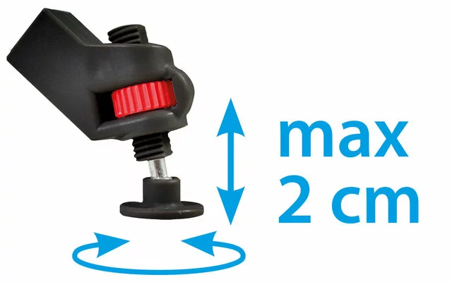 - Ajuste de nivel micrométrico con nivel de burbuja – Estante superior de MDF – Funda de poliéster duradera – Gasa de ventilación en la pared trasera – Bolsa de transporte incluida