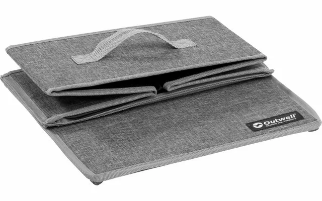 Cómoda asa de cincha en la parte delantera de la caja de almacenamiento Outwell Palmar. Tamaño de paquete pequeño. Funda interior de poliéster fácil de limpiar. Estante para mayor estabilidad cuando se despliega. También es adecuado para su uso en tiempo húmedo.