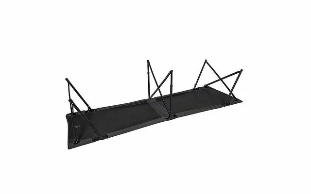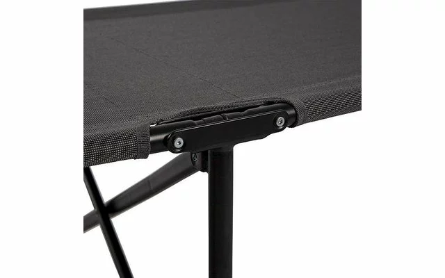 Una cama de campamento con 3 patas de acero y un marco de acero. Compacto y portátil. Viene con una bolsa de transporte.