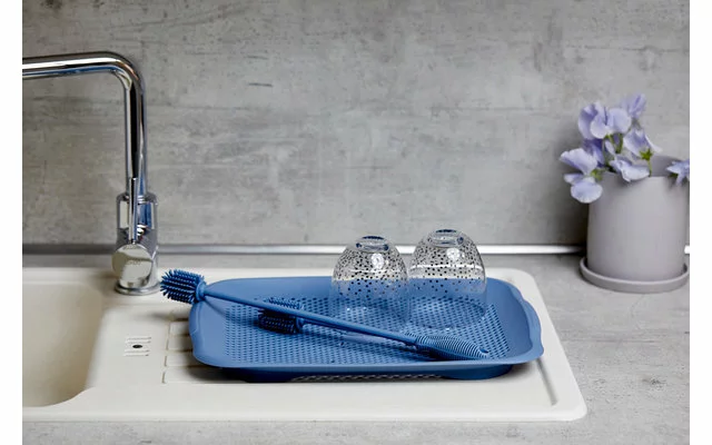 Este práctico cepillo para biberones, fabricado en silicona de alta calidad, limpia eficazmente y sin rayar las botellas y vasos de plástico, acero inoxidable o vidrio.