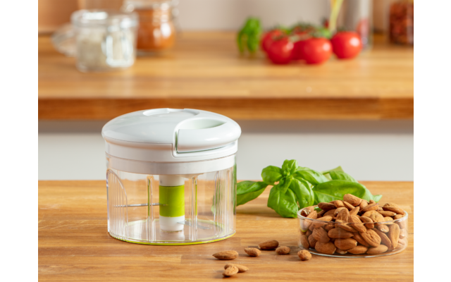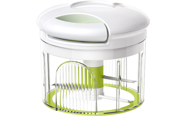 Con la cortadora de hierbas y verduras Turboline, podrá picar casi cualquier tipo de ingrediente de forma rápida y eficaz con sólo tirar del mango El sistema patentado está equipado con un sistema de