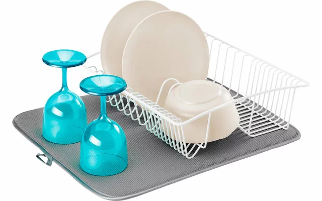 Ideal para el secado rápido y sin cal de vasos, platos, ollas y sartenes. Absorbe el agua y evita los charcos.