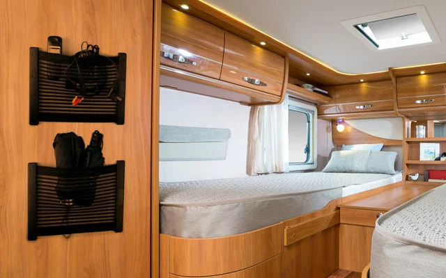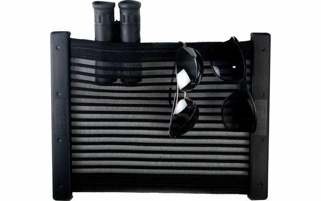 El listón final disponible por separado (se puede montar posteriormente) evita que el contenido fino o plano se cuele. Normalmente, en la red de almacenamiento de KiiPER cabe casi todo. En las caravanas o autocaravanas, por lo general, se recomienda colocar un listón final si no se fija cerca del suelo.