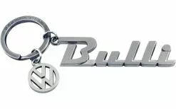Llavero con bonitas letras «Bulli» y un pequeño colgante con el logotipo de VW en el llavero, de zinc-aluminio cepillado. El regalo perfecto para todo conductor de Bulli o para aquellos que quieran convertirse en uno;