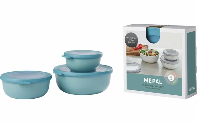 El juego de 3 piezas de Mepal, con un elegante diseño nórdico, es lo último para la cocina. Gracias a su práctico tamaño, los cuencos Cirqula pueden utilizarse para almacenar, congelar, recalentar y servir alimentos. Además, la tapa es 100% hermética y a prueba de fugas. Esto mantiene los alimentos frescos durante más tiempo y hace que sean fáciles de llevar sobre la marcha