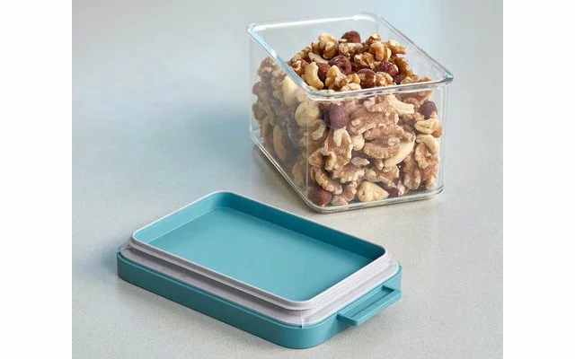 La lata rectangular Omnia con tapa en color verde nórdico le ayuda a guardar todo lo que le resulta delicioso: desde el aromático café hasta los crujientes copos de maíz. Esta lata de almacenamiento con una capacidad de 700 ml es espaciosa y versátil, se cierra herméticamente y es muy resistente a los golpes. Además, el Omnia se puede apilar mejor que nunca. El elegante verde nórdico de la tapa aporta un elemento decorativo adicional a su aparador. Así que la búsqueda de una solución de almacenaje bonita y útil para la cocina, cada vez más abarrotada, ha terminado: ¡la respuesta es Omnia!