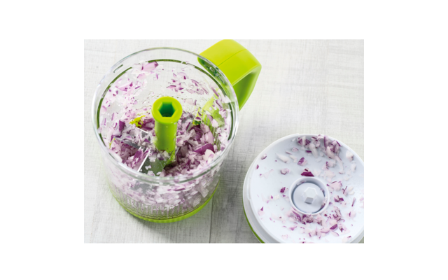 Gracias a la cuchilla ultra afilada de 5 hojas, incluso los alimentos duros como las nueces o el queso parmesano se pican en un abrir y cerrar de ojos.