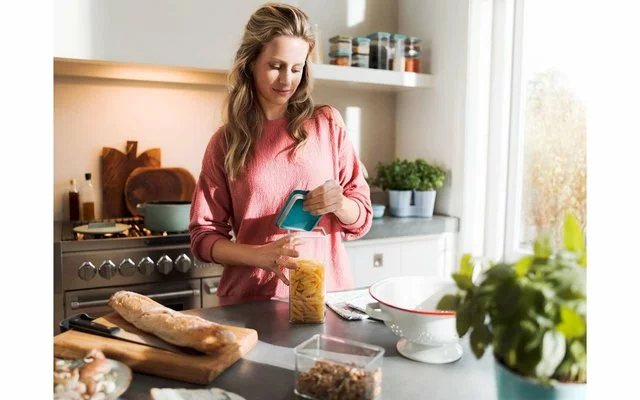 La lata rectangular Omnia con tapa en color verde nórdico le ayuda a guardar todo lo que le resulta delicioso: desde el aromático café hasta los crujientes copos de maíz. Esta lata de almacenamiento con una capacidad de 700 ml es espaciosa y versátil, se cierra herméticamente y es muy resistente a los golpes. Además, el Omnia se puede apilar mejor que nunca. El elegante verde nórdico de la tapa aporta un elemento decorativo adicional a su aparador. Así que la búsqueda de una solución de almacenaje bonita y útil para la cocina, cada vez más abarrotada, ha terminado: ¡la respuesta es Omnia!