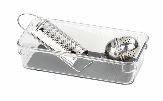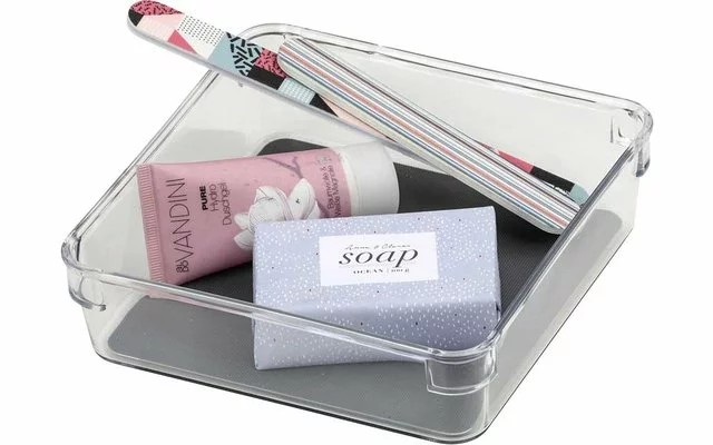 El práctico separador de cajones Cube de WENKO pone orden en todos los cajones. Ya sea en la cocina, en el pasillo, en el armario o en el cuarto de baño, el organizador permite guardar los utensilios de forma ordenada y tenerlos siempre a mano. Con un diseño moderno fabricado en plástico de alta calidad y de color gris-transparente, la caja cuadrada cabe en cualquier cajón estándar. Todos los separadores de cajones de WENKO pueden combinarse individualmente entre sí y además son antideslizantes.