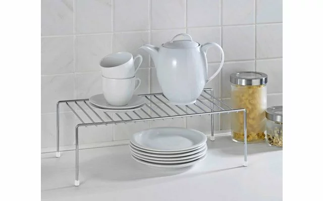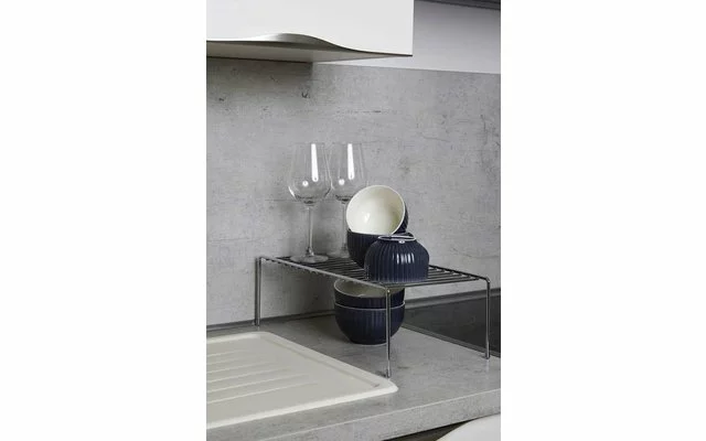 El práctico escurreplatos se adapta a cualquier encimera para ahorrar espacio. El estante de cromo brillante ofrece mucho espacio de almacenamiento para la vajilla y los utensilios de cocina o los aparatos de cocina más pequeños. Los alimentos también se pueden guardar al alcance de la mano en la práctica estantería. Esto hace que este estante para vajilla sea un útil ayudante en todos los hogares. La estantería está equipada con tapas protectoras en los cuatro pies para evitar que se raye la superficie de almacenamiento.