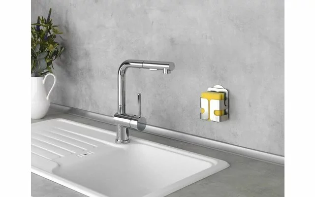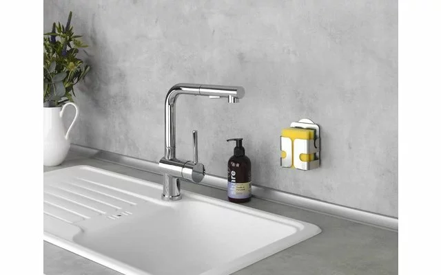 Gracias al sistema especial de almohadillas adhesivas, cada uno de los ganchos de fijación puede cargarse permanentemente con una fuerza de tracción de hasta 40 kg. El práctico portaesponjas Turbo-Loc está fabricado en acero inoxidable.