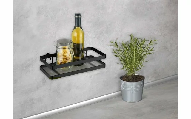 ¿Prefieres montarlo sin taladrar? No hay problema Como alternativa, WENKO también ofrece otra opción de fijación: sin taladrar. Estos adaptadores a juego están disponibles por separado: Adaptador Turbo-Loc Negro El montaje de pared Turbo-Loc es un sistema adhesivo con una sujeción extremadamente firme en todas las superficies lisas. Basta con retirar la película protectora de las dos almohadillas adhesivas, fijar el soporte en la posición deseada y presionar. Actualice su cocina: con los demás accesorios de cocina de la serie Gala, como el riel de ganchos con ocho ganchos, el especiero y el portarrollos de cocina, puede dar a su lugar favorito un aspecto uniforme y vanguardista.